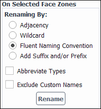 (optional) When fusing two face zones, you can specify a name for the fused zone instead of using a default name. To do this, disable the Use default name for new fused zone option and enter the desired name in the Fused zone name text entry box. Note that this option is not available when fusing more than two zones.