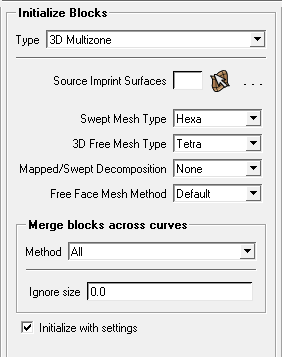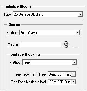 Whether initialized from Surfaces or from Curves, set the Surface Blocking Method, Free Face Mesh Type, and Free Face Mesh Method.