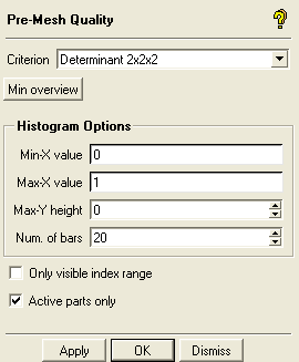 The Pre-Mesh Quality option allows you to check the mesh quality. All the elements of the current volume family will be included in the quality check.