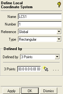 You can define local coordinate systems (LCS) for use in geometry, mesh, blocking or boundary condition manipulation using the LCS icon in the main menu. The default coordinate system located at the origin is called Global.