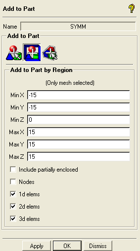 Creates a sub-part comprising all the surfaces along with attached mesh elements, from the selected part. This option is valid only for parts containing surfaces. The following additional options will be made available for the original part: