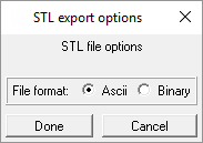 The option converts geometry in Ansys ICEM CFD to the STL format. Select the appropriate file format and click Done to finish the operation.