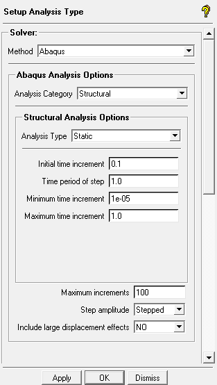 For Abaqus, two Analysis Types are supported: Static and Natural Frequency Extraction.