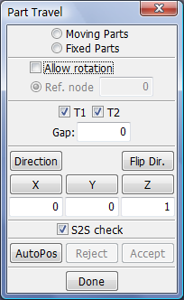 With either of these toggles active, an appropriate gap will be left between the moving and the fixed parts. The purpose for this is to make the parts "exactly in contact" as far as LS_DYNA is concerned. Additional clearance between the moving and the fixed parts can be added by typing a value in the Gap field.