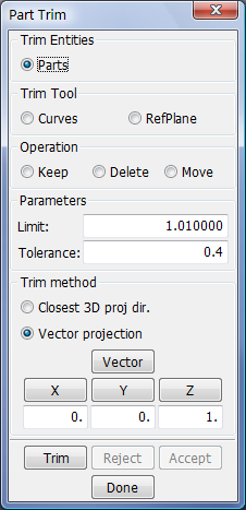 when active, parts to trim can be selected by clicking on them in the graphics window.