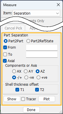 The thicknesses of the moving parts will be considered if the T1 toggle is active.