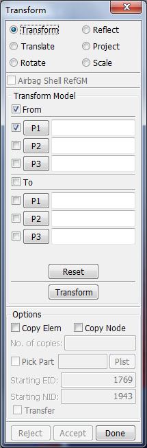Reflect,project,translate,transform,scale and rotate model entities with option to copy.