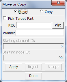 Select moving parts. The nodes of the Moving parts will be moved. Multiple parts can be selected.