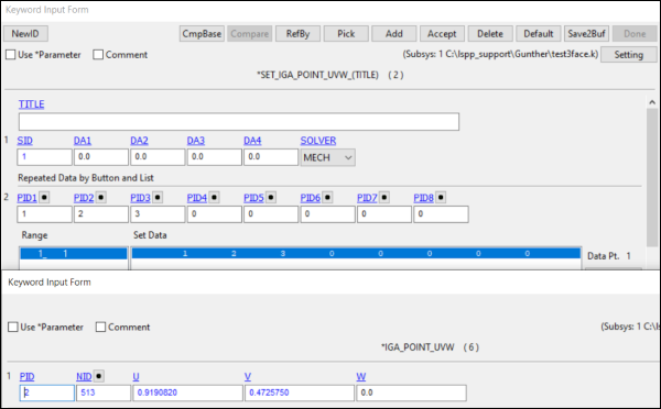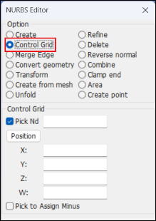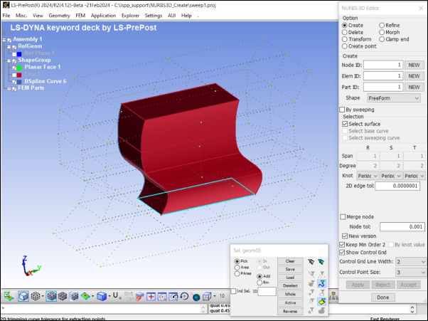 Show, create, delete, and modify 2D FEM NURBS keyword.