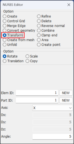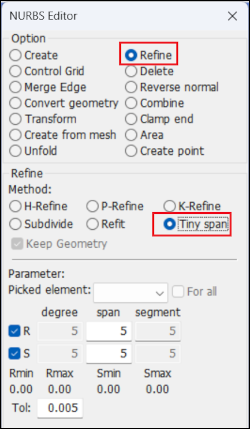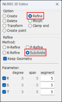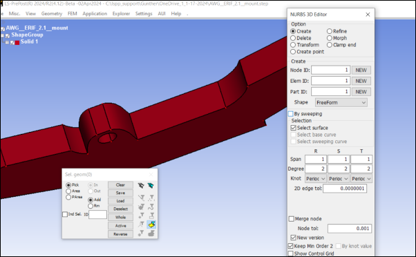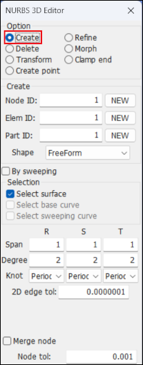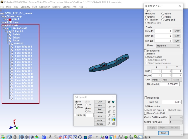 Show, create, delete, and modify 3D FEM NURBS keyword.