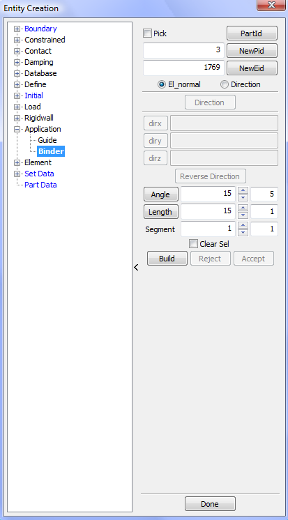 Menu tool for FE part management