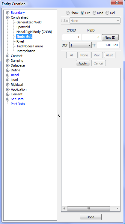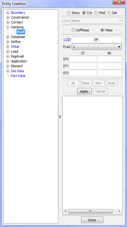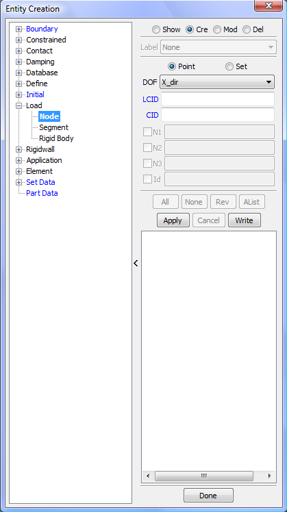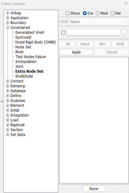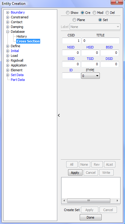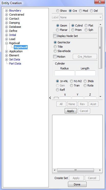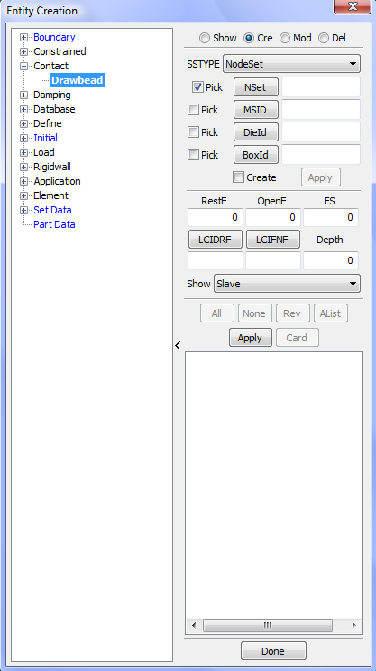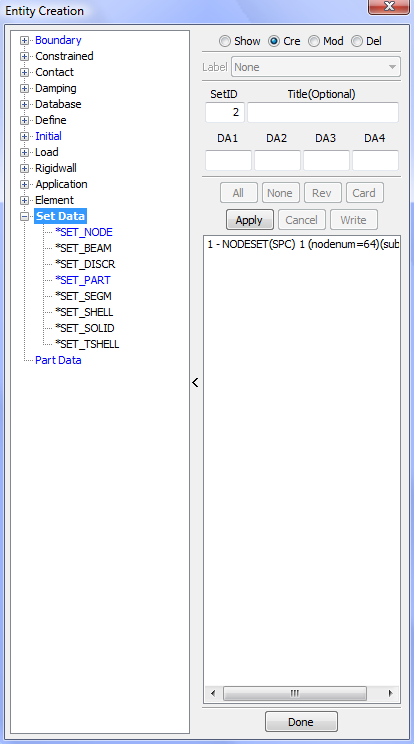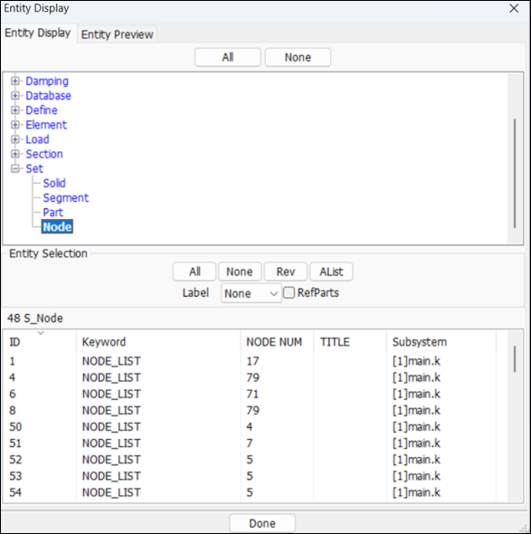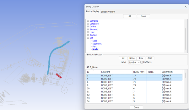 Display LS_DYNA entities such as sets, contacts, rigidwalls, boundary, etcetera .