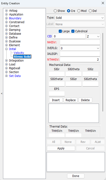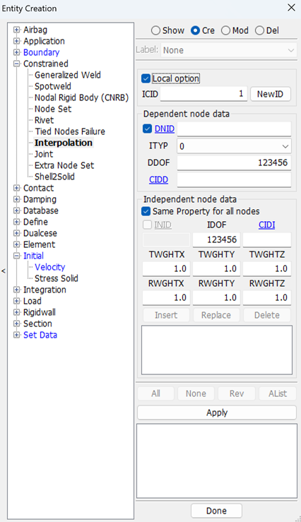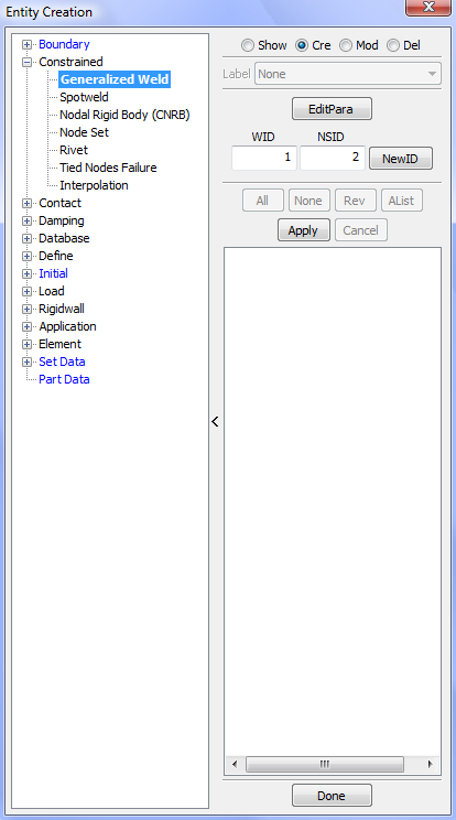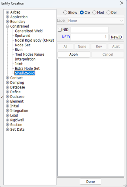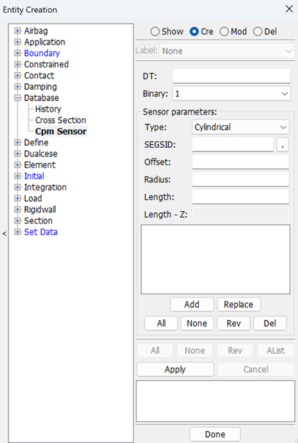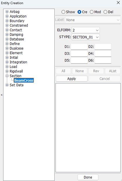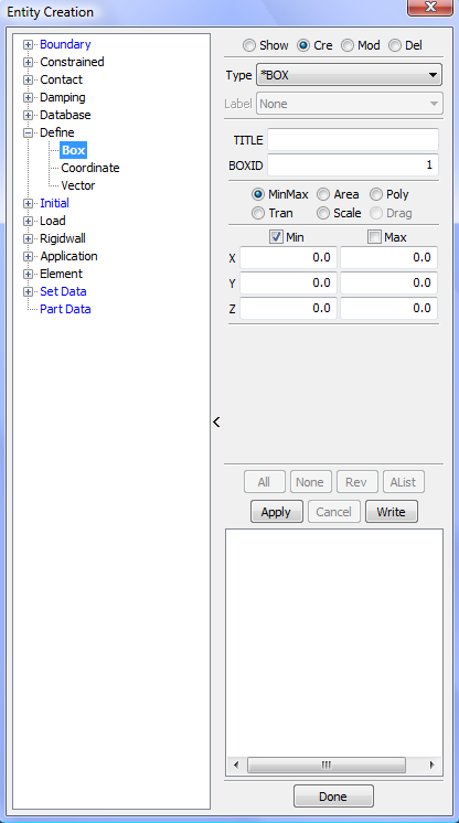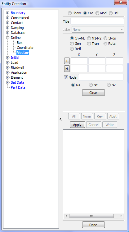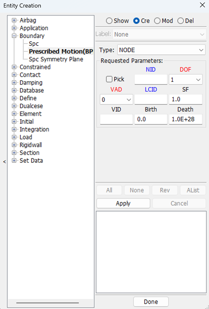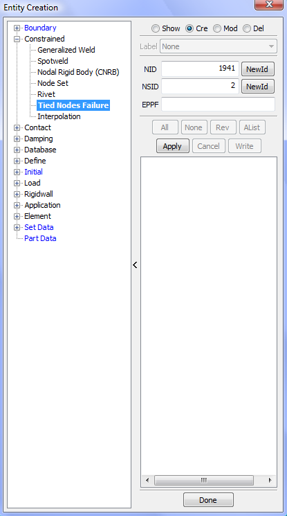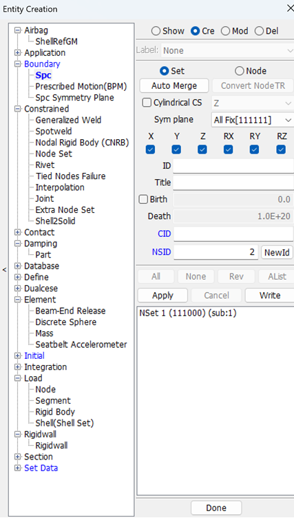 Display LS_DYNA entities such as sets, contacts, rigidwalls, boundary, etcetera .