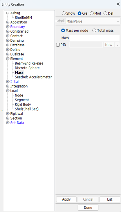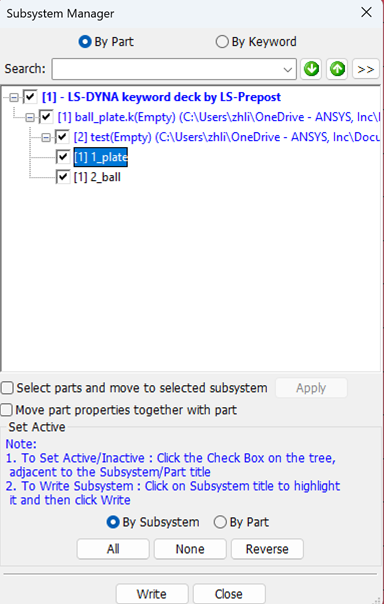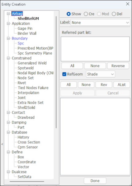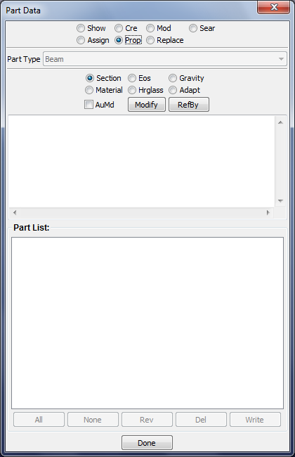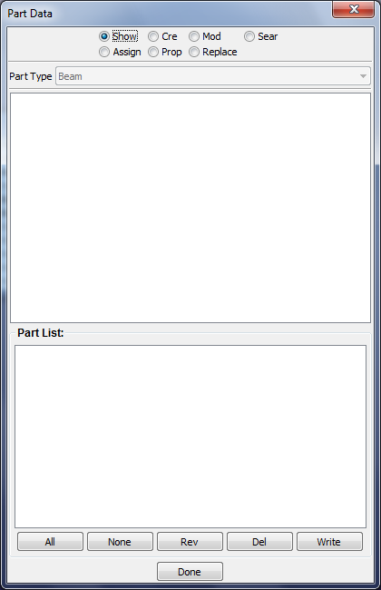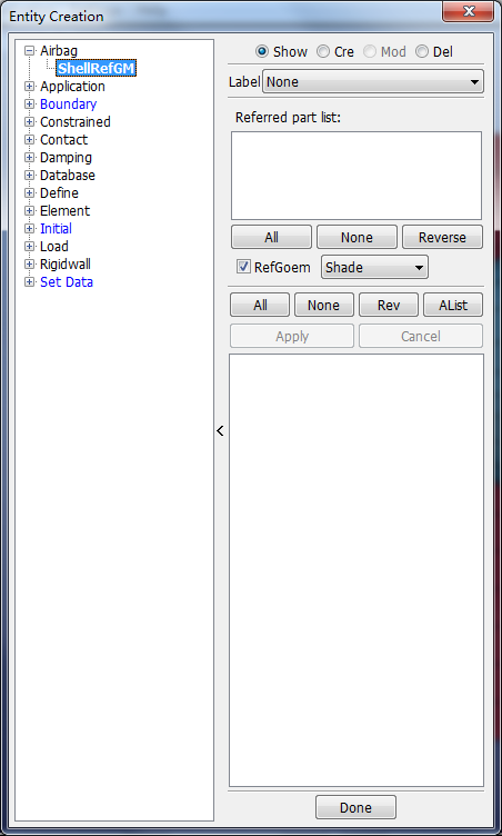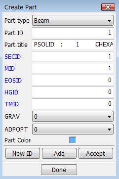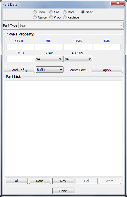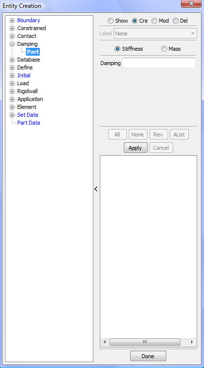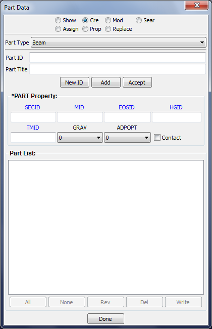 This interface is used for general managment of parts, include FE parts, Geometry parts and part display set.