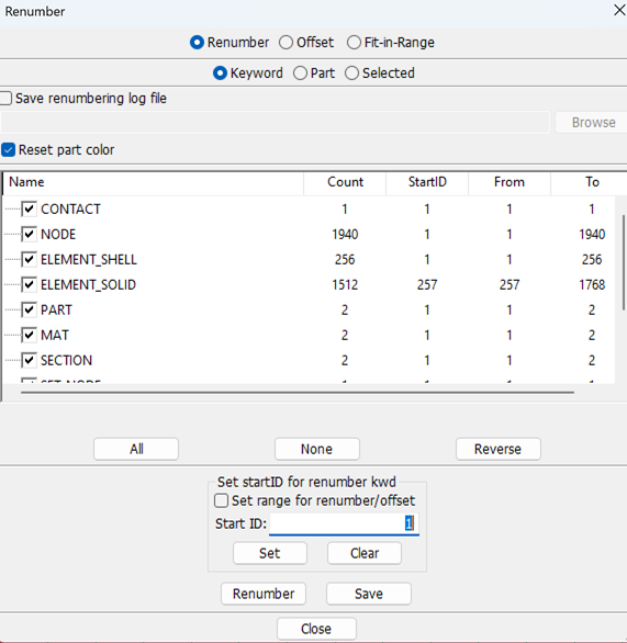 Renumber IDs of model entities.