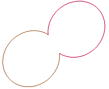 a. Two circles (radius=1.0) trimmed with each other