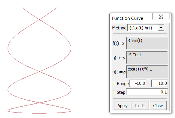 You can create any parameter curves by defining proper function parameters. The result is a one degree B-Spline curve. Click View, Geom Curve to toggle the display of individual curve.