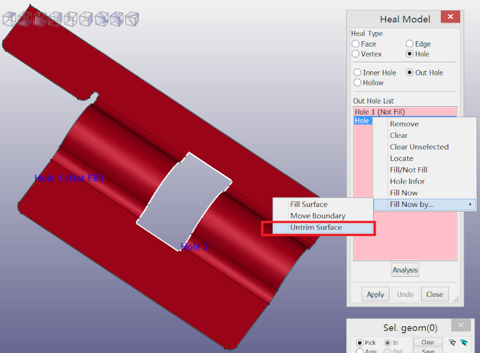 b. Untrim surface by selecting top several edges (Connect End Points)