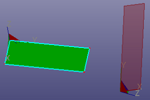 b. Shear result using angle 30 (The gray region is the base plane, the green vertical line is the shear axis.)