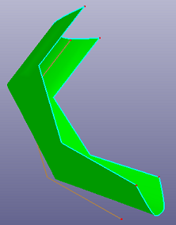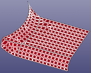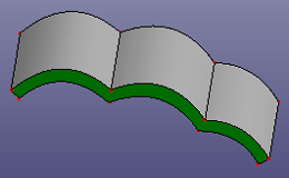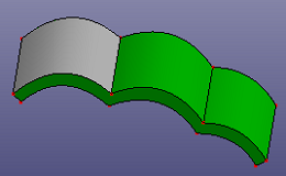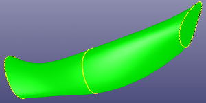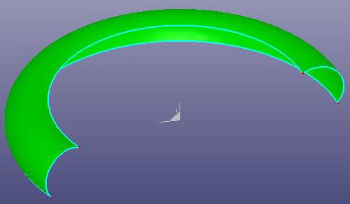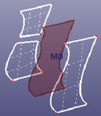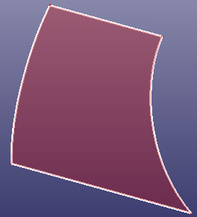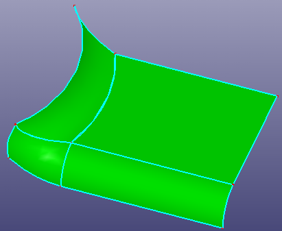 Patch surface is for constructing a B-Spline surface filled from contiguous B-Spline curves which form its boundaries. The algorithm accepts two, three or four B-Spline curves as the boundaries of the target surface. A range of filling styles - more or less rounded, more or less flat - is available. Click View, Geom Surface to toggle the display of individual surface.