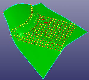 Select a surface and define the U, V parameters to split it. When "N-Segments" is checked, use number of ISO split segments to break surface. To create only ISO curves, check "Only ISO Curves". To create only parameter points, check "Only Sample Pnts".