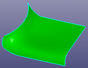 Give a set of connected edges or wires, to fill a surface. You can add boundary constraint such as C1, C2.