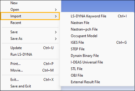 Import a keyword (*.k, *.key, *.dyn) file.