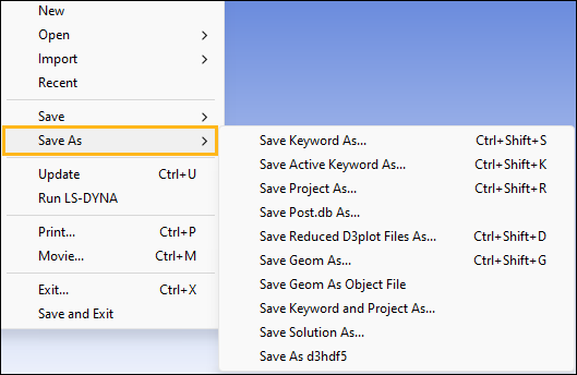 Save keyword, project, Post.db and geometry files
