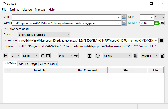 An interface to build the command that will start LS-DYNA