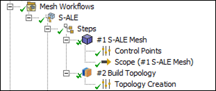 The S-ALE Mesh operation generates the S-ALE mesh from a set of control points and loads the mesh into Mechanical. The S-ALE Mesh operation has the following Mesh Workflow Controls: