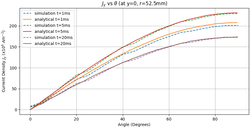 | Current Density at t = 1 ms for θ = 20 deg | 72.34 | 72.48 | 0.19 |