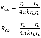 Where the thermal resistances Rac and Rbc can be expressed as below:
