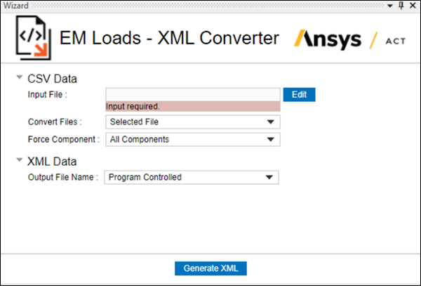 After selecting all the required inputs and setting properties, click the button to generate the load file in .xml format. This file is created in the same location as the input .csv file. The resulting .xml file is compatible with the format supported by the Imported Remote Loads object.