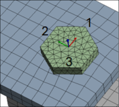 : The coordinate system is derived from three specified nodes forming a circle. This method allows you to define an origin at a location that might not have a node, typically at the center of a circular or cylindrical area.