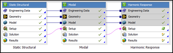Contents Chapter 4: Forced Response Add-on | Print page 4.3. Setting Up the Forced Response AnalysisTo perform a Forced Response analysis, connect a Static Structural with a Modal analysis in Workbench. Then insert a connected Harmonic system. « 4.2. Make the Forced Response Add-on Available 4.3.1. Setting Up the Static Structural Analysis »