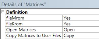 Copy Matrices copies the matrices in a csv format to the project's user file.