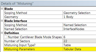The number of sectors is automatically populated and gives the number of mistuning values to be input.