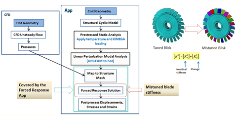 Mistuned object takes tuned response and adds the mistuning effects of each blade in cyclic analysis