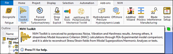 To make the NVH capabilities available, click the NVH Toolkit Icon