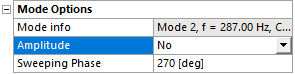 If the Complex to Real Projection option is selected, these options become read-only properties. The Sweeping Phase value is the value used for sweeping phase of the mode shape.