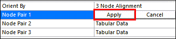 Only available for a unv File 2 model. Orient the unv model according to the RB transformation defined by 3 node matches between the rst and unv models. Each Node Pair is defined through a Tabular Data property that is displayed when the property is clicked.