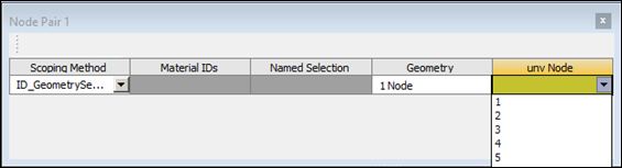 The unv node is selected through a drop-down menu that displays the unv Node Numbers as shown in the UNV Node Worksheet.