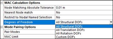 Dropdown property that allows the restriction of the MAC Calculation to a certain subset of Degrees of Freedom: