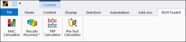 When the NVH Add-on is loaded, the NVH ribbon is accessible. It displays the following buttons: