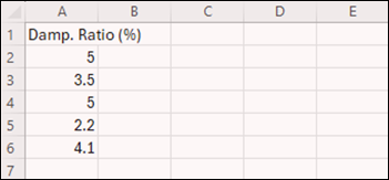 The file should have 1 column, starting at cell A1. The content must be the damping values expressed as a percentage.