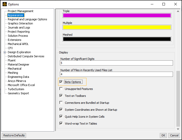 On the Workbench Project page, select the Tools menu and then . Select the Appearance category, scroll down the dialog, select , and select .
