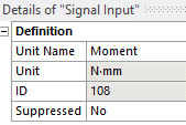 Change the Unit Name property of the Signal Input object to define the units used by the co-simulation inputs. The Unit and ID properties cannot be edited.