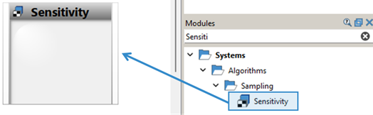 From the Modules > Systems > Algorithms > Sampling folder, drag the Sensitivity system to the Scenery pane and let it drop.
