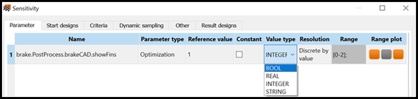 | Ansys ModelCenter type | optiSLang Parameter | optiSLang Response |