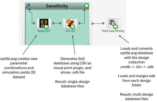 Convert many single-design SDBs/VTPs/VTUs results files into a single merged SDB or Twin Builder format using the Field Data Mining node.